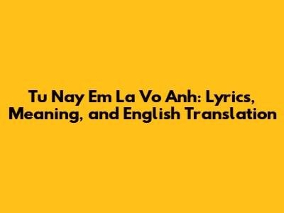 Tu Nay Em La Vo Anh: Lyrics, Meaning, And English Translation