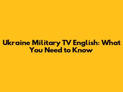 Ukraine Military TV English: What You Need To Know