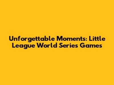 Unforgettable Moments: Little League World Series Games