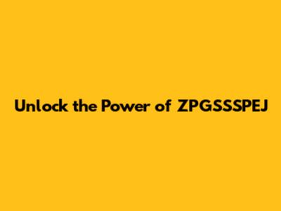 Unlock The Power Of ZPGSSSPEJ