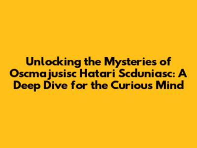 Unlocking the Mysteries of Oscmajusisc Hatari Scduniasc: A Deep Dive for the Curious Mind