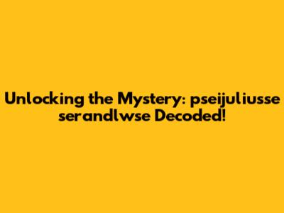 Unlocking The Mystery: Pseijuliusse Serandlwse Decoded!