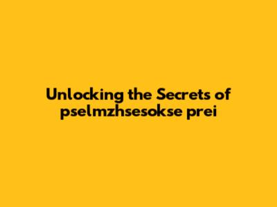 Unlocking The Secrets Of Pselmzhsesokse Prei