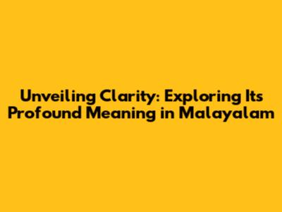 Unveiling Clarity: Exploring Its Profound Meaning In Malayalam