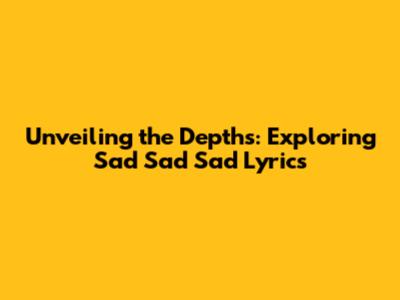 Unveiling The Depths: Exploring 'Sad Sad Sad' Lyrics
