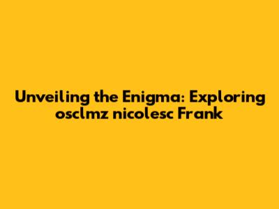 Unveiling The Enigma: Exploring Osclmz Nicolesc Frank