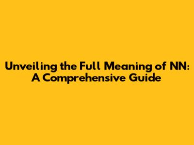 Unveiling The Full Meaning Of NN: A Comprehensive Guide