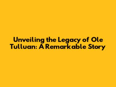 Unveiling The Legacy Of Ole Tulluan: A Remarkable Story