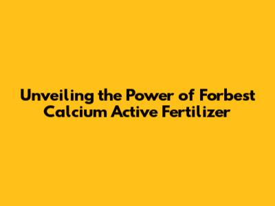 Unveiling The Power Of Forbest Calcium Active Fertilizer