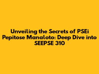 Unveiling The Secrets Of PSEi Pepitose Manaloto: Deep Dive Into SEEPSE 310