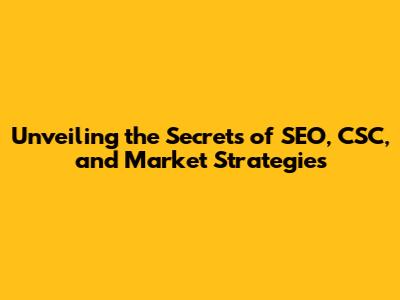 Unveiling The Secrets Of SEO, CSC, And Market Strategies
