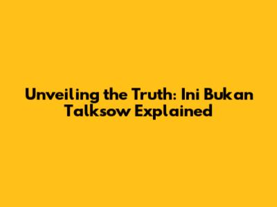 Unveiling The Truth: Ini Bukan Talksow Explained