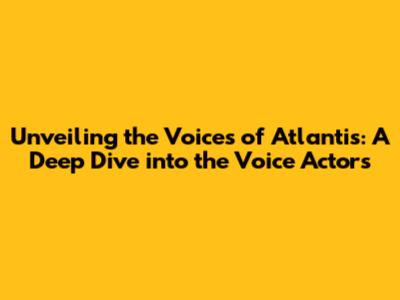 Unveiling The Voices Of Atlantis: A Deep Dive Into The Voice Actors