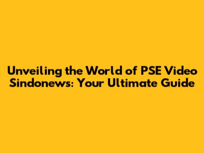 Unveiling The World Of PSE Video Sindonews: Your Ultimate Guide