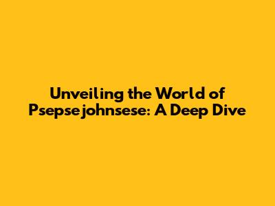 Unveiling The World Of Psepsejohnsese: A Deep Dive