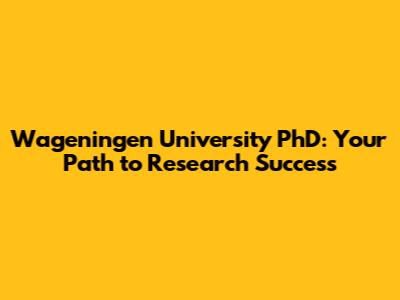 Wageningen University PhD: Your Path To Research Success