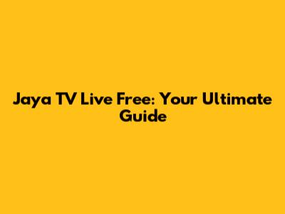 Watch Jaya TV Live Online Free: Your Ultimate Guide