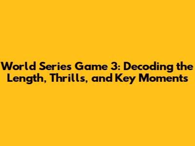 Alright, sports fanatics! Let's dive deep into the heart of the Fall Classic and dissect one of the most intriguing aspects of a World Series game: how long it actually lasts. Specifically, we're zeroing in on Game 3. You know, that pivotal moment where the series starts to really take shape. Whether you're a die-hard baseball enthusiast or just a casual viewer tuning in for the excitement, understanding the duration of a World Series game is key. It helps you plan your evening, gauge the intensity, and appreciate the strategic battles unfolding on the field. So, buckle up, because we're about to explore the length of World Series Game 3, uncovering the factors that influence it, and revisiting some of the most memorable moments that kept us glued to our screens. Get ready to have your baseball knowledge expanded, guys!