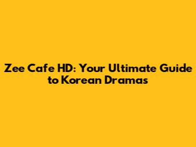 Unveiling Zee Cafe HD: Your K-Drama Destination